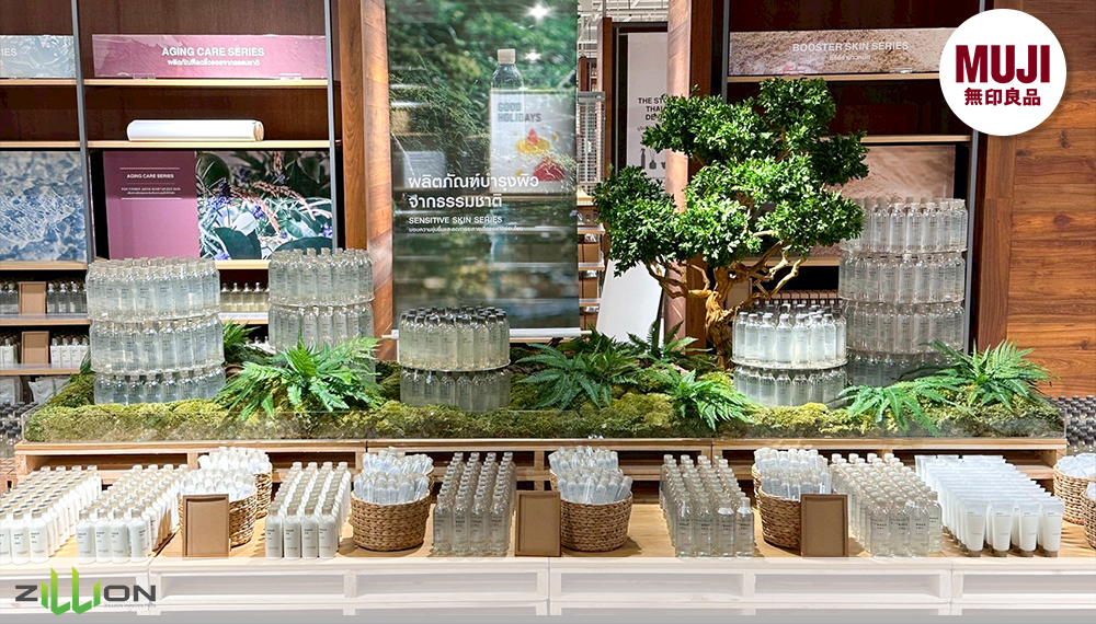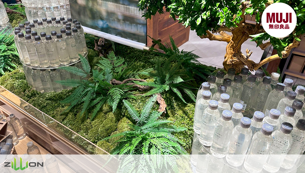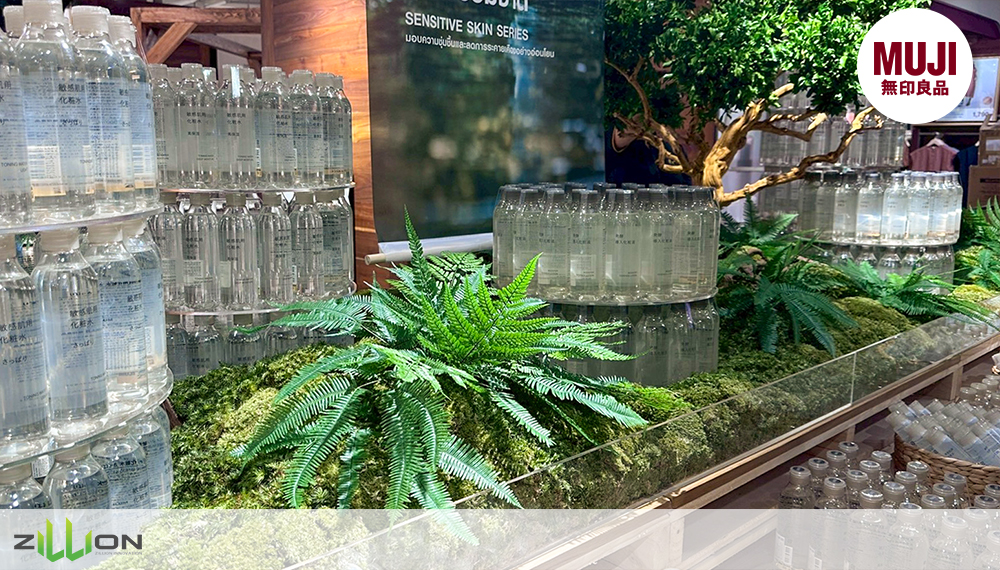พื้นที่แสดงสินค้าของ MUJI ถูกเติมเต็มด้วยเสน่ห์ของธรรมชาติในรูปแบบที่เรียบง่ายและยั่งยืน ผ่าน Preserved Moss จากพืชจริงที่ผ่านกระบวนการคงสภาพพิเศษ