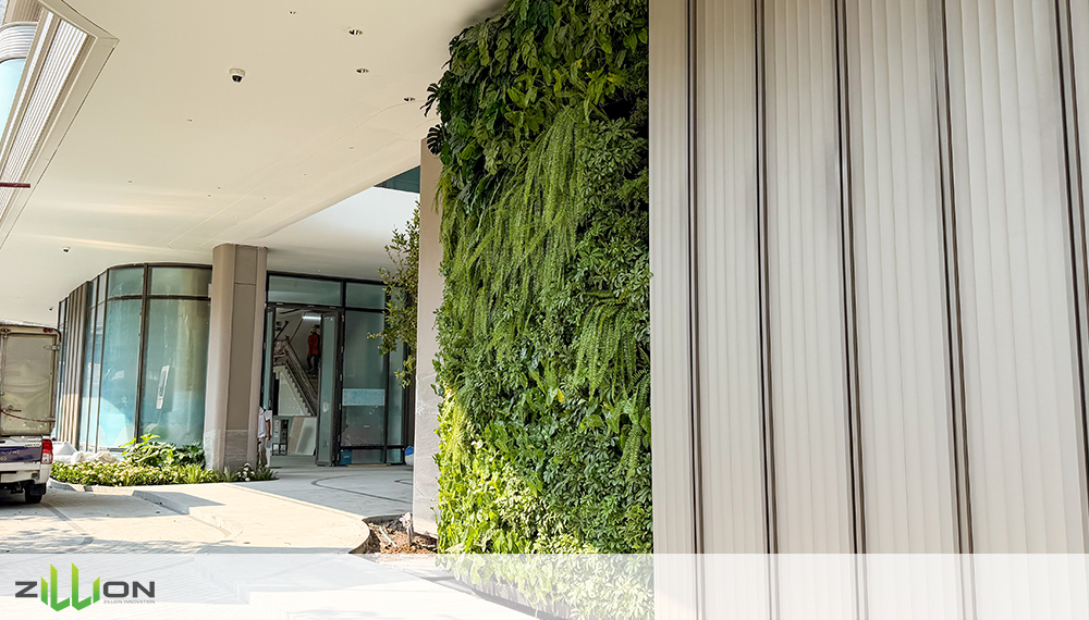 ที่มีพื้นที่สีเขียวอย่าง Green Wall จาก Zillion Innovation ที่ถูกสร้างสรรค์ในโครงการหรูระดับ Ultra-Luxury Condo ทำให้สร้างมูลค่าให้กับโครงการ ได้อย่างลงตัว